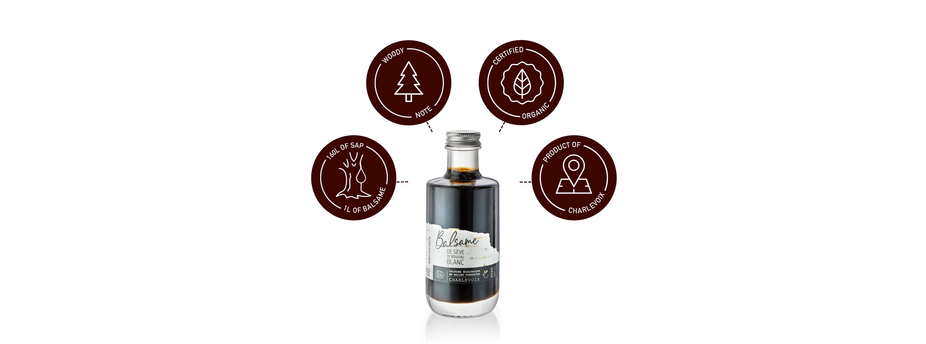 Our Balsame is crafted from white birch water harvested on our lands in Baie-Saint-Paul. Our meticulous finishing process gives the product a remarkable range of nuanced flavours!