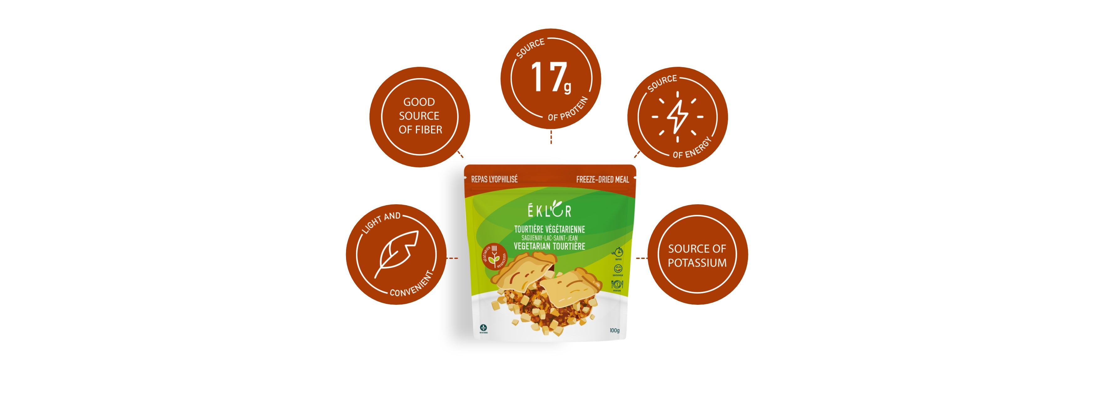 Experience the authentic pleasure of tourtière, reimagined for modern life! Our individual pouches contain a perfect portion of freeze-dried tourtière, ready to enjoy wherever you are.