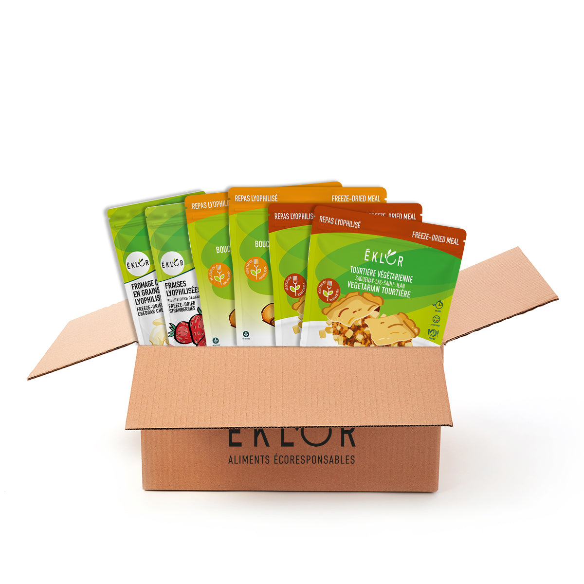 La boîte repas Éklor est la meilleure option pour savourer nos plats lyophilisés végétariens tout en économisant.