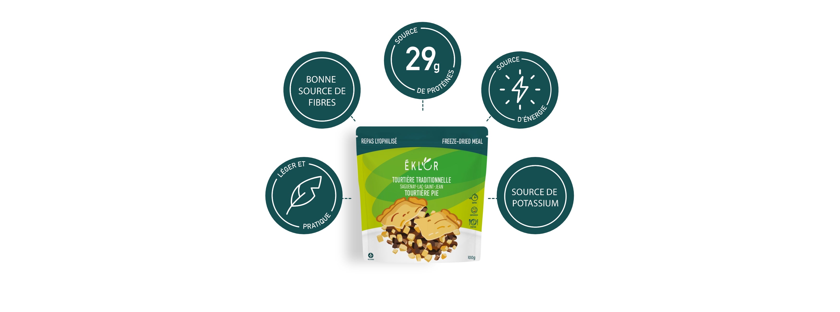 Découvrez le plaisir authentique de la tourtière, revisité pour la vie moderne ! Nos sachets individuels contiennent une portion parfaite de tourtière lyophilisée, prête à être savourée où que vous soyez.